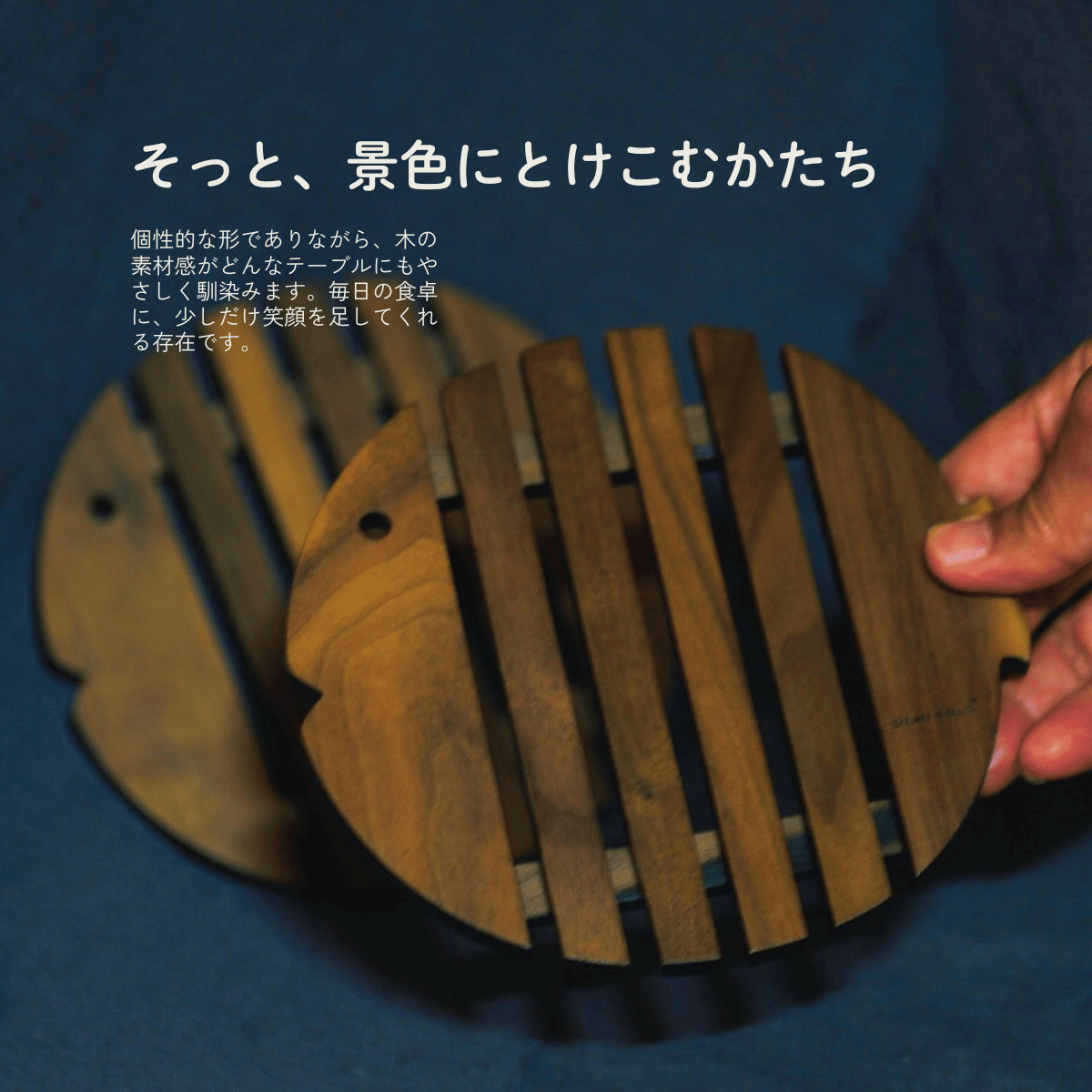 鍋を置いても、ティーポットを置いても、どこか和やかな雰囲気にしてくれるデザインです。